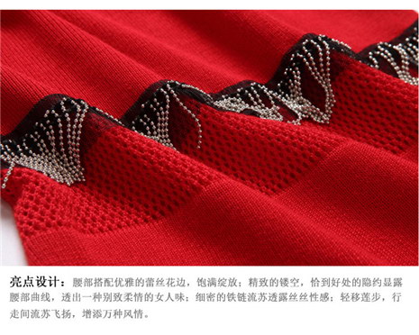 新款女装蕾丝流苏毛衣春夏连衣裙