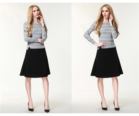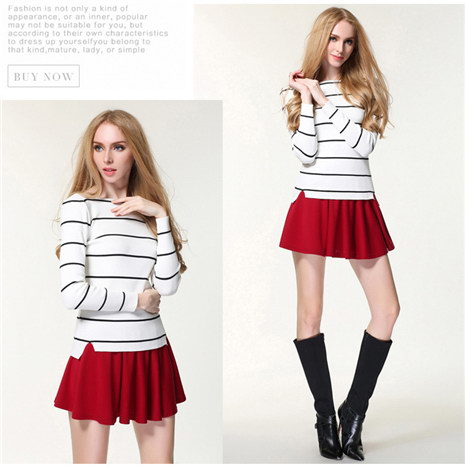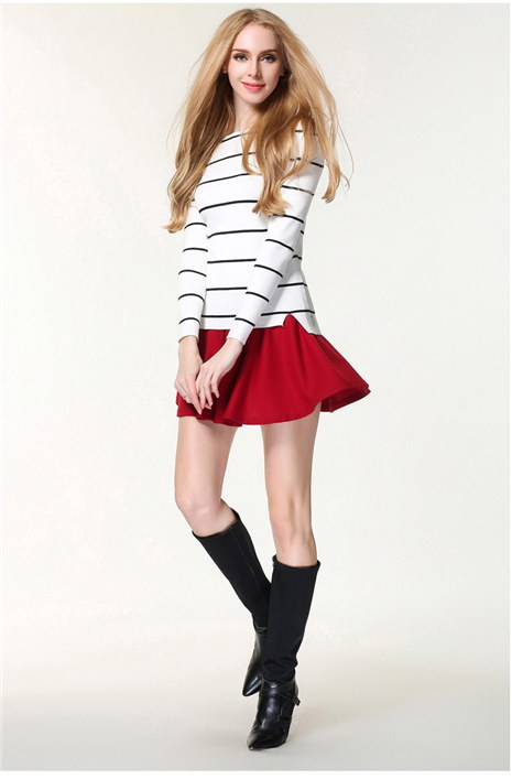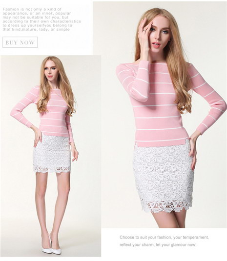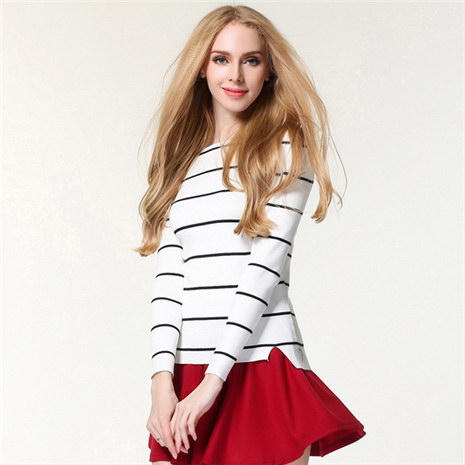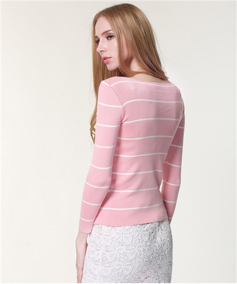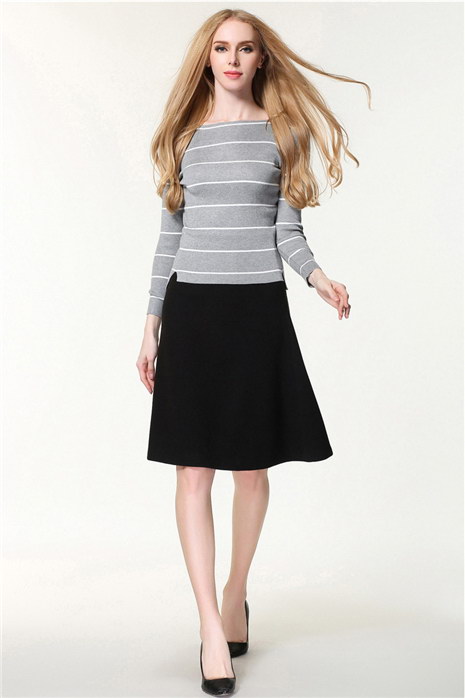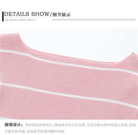 冬款女式条纹一字领毛衣打底衫