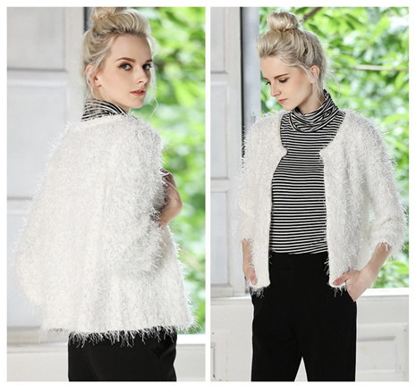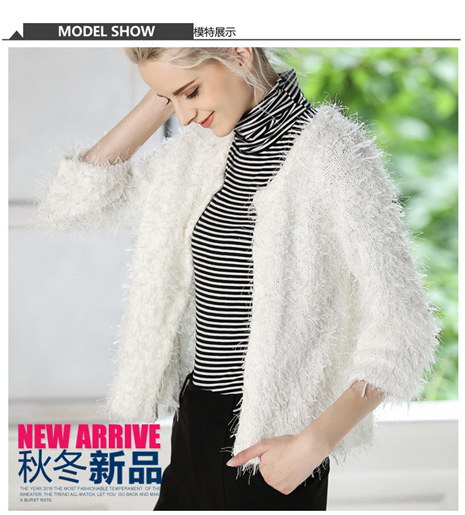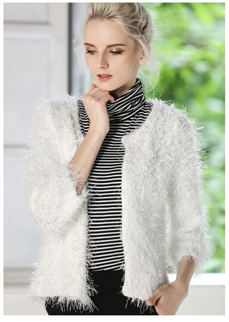 秋冬款女装保暖针织衫纯白色简约短款加厚开衫外套