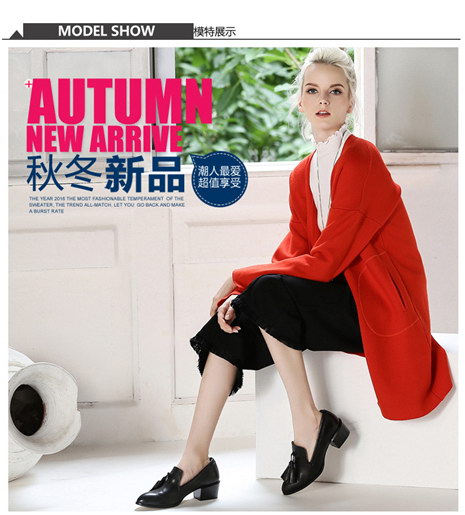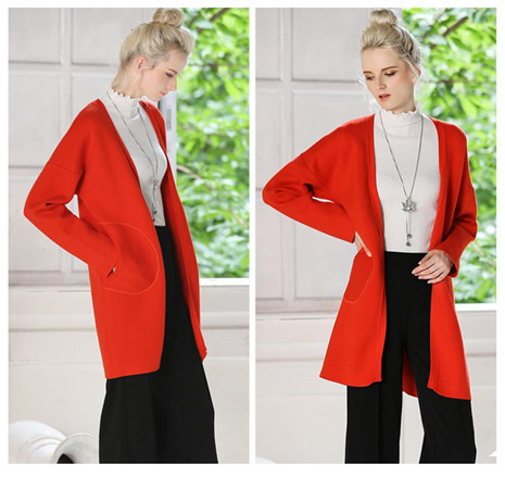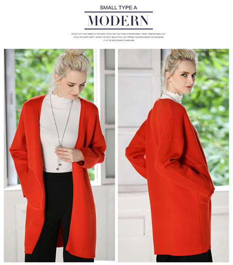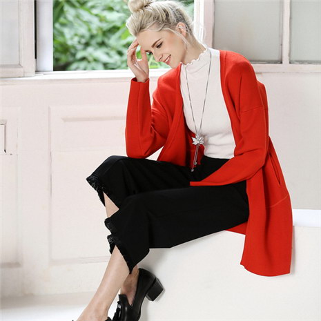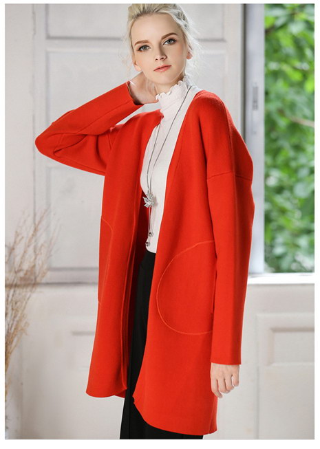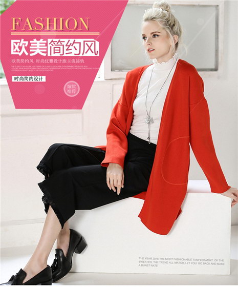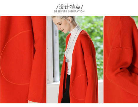 秋冬款女装中长款简约大气双口袋针织毛衣外套